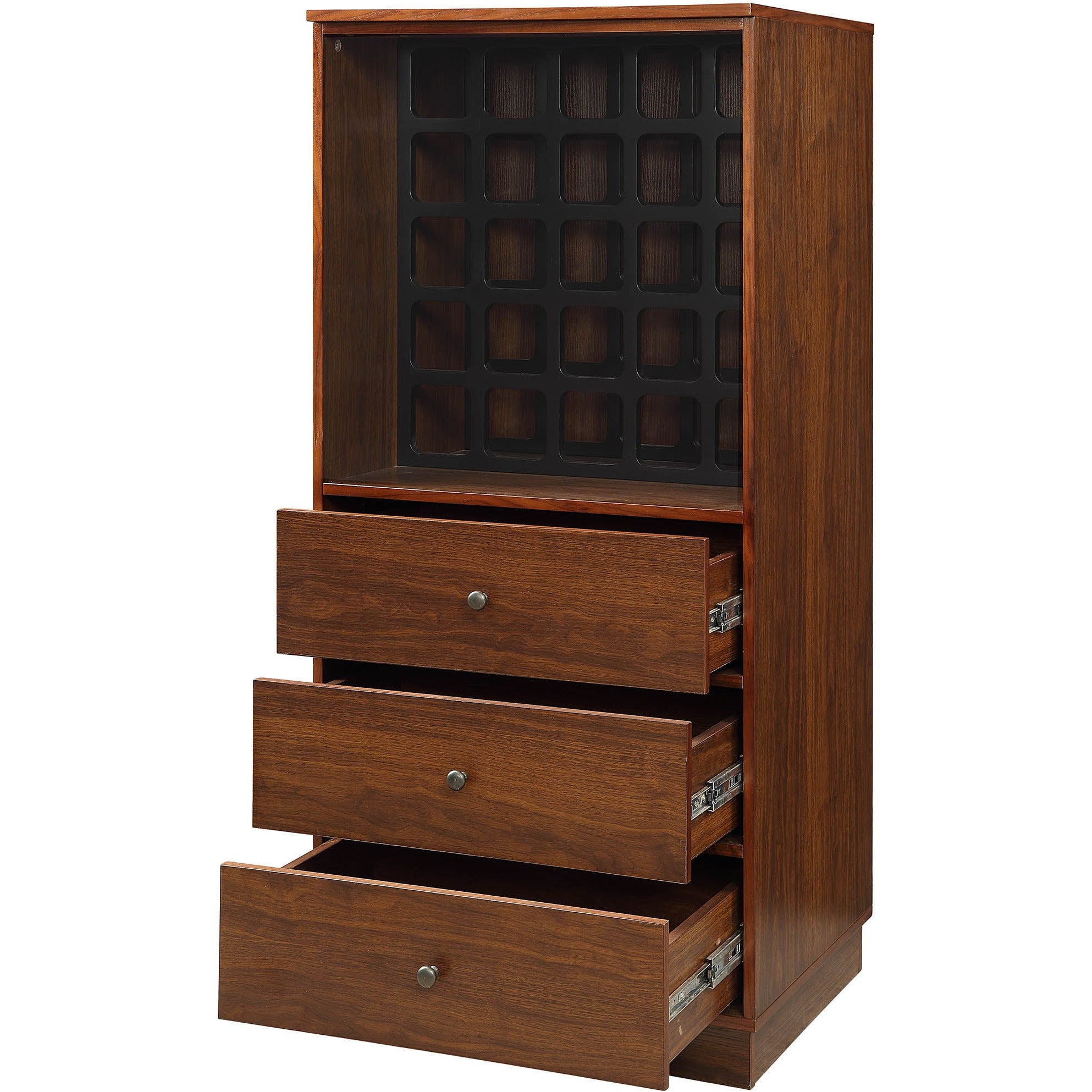 - Wine Cabinet In Walnut - Mdf. The estimated weight capacity is 150 Lbs (Drawer 25 Lbs).