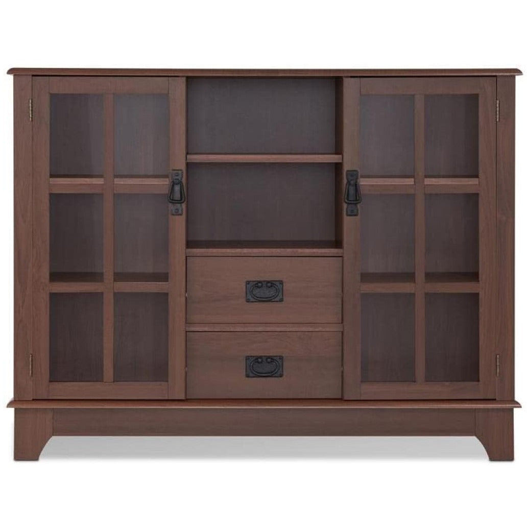 - whether you want this alluring cabinet in your bedroom or dressing room, it will seamlessly anchor any existing setting. beautifully fashioned, this accent piece has got an appealing profile that will quickly become a focal point in any room. it features a framed glass door with see-through shelves inside, meaning there is ample space for keeping and organizing your personal essentials. the overall construction is creatively finished in walnut that can easily match any existing room decor.
