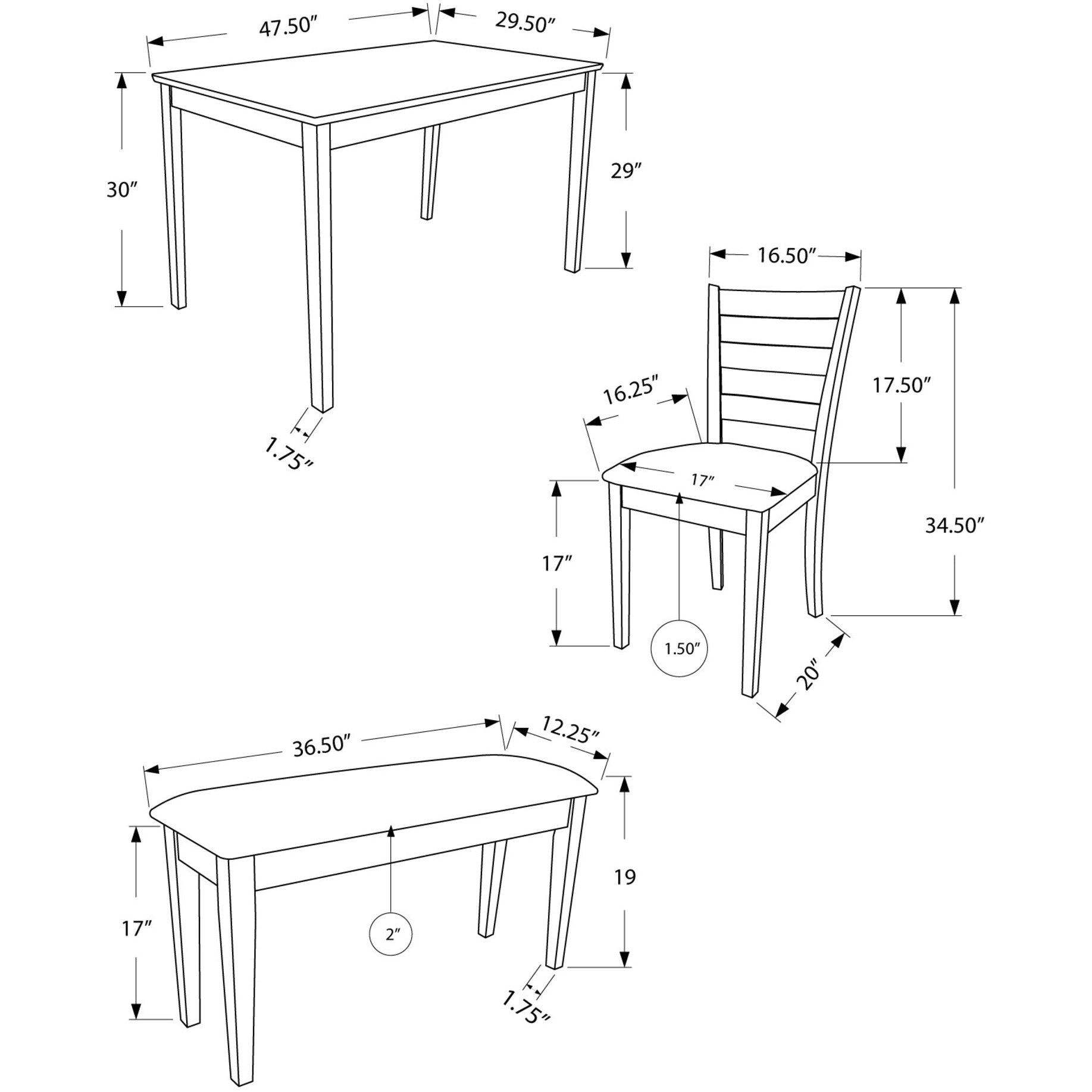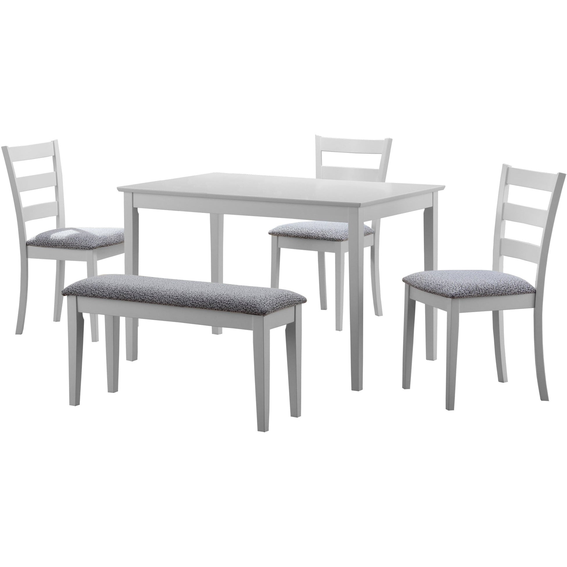 - Liven up the look of your dining room and provide it with a feel of elegance and taste with this fascinating dining set. It has a striking modern design that will definitely revive your interior and give it some warmth. Not to mention how obviously well-made it is. This lovely dining set is proficiently made from long lasting solid wood, MDF, and foam. It's fantastic for making the place livelier and providing some fantastic contemporary chic. It's also highly practical besides just standing out with its looks. With this dining set, you'll get a warm and inviting piece for your living room, bedroom, or dining room. This is a set of five.