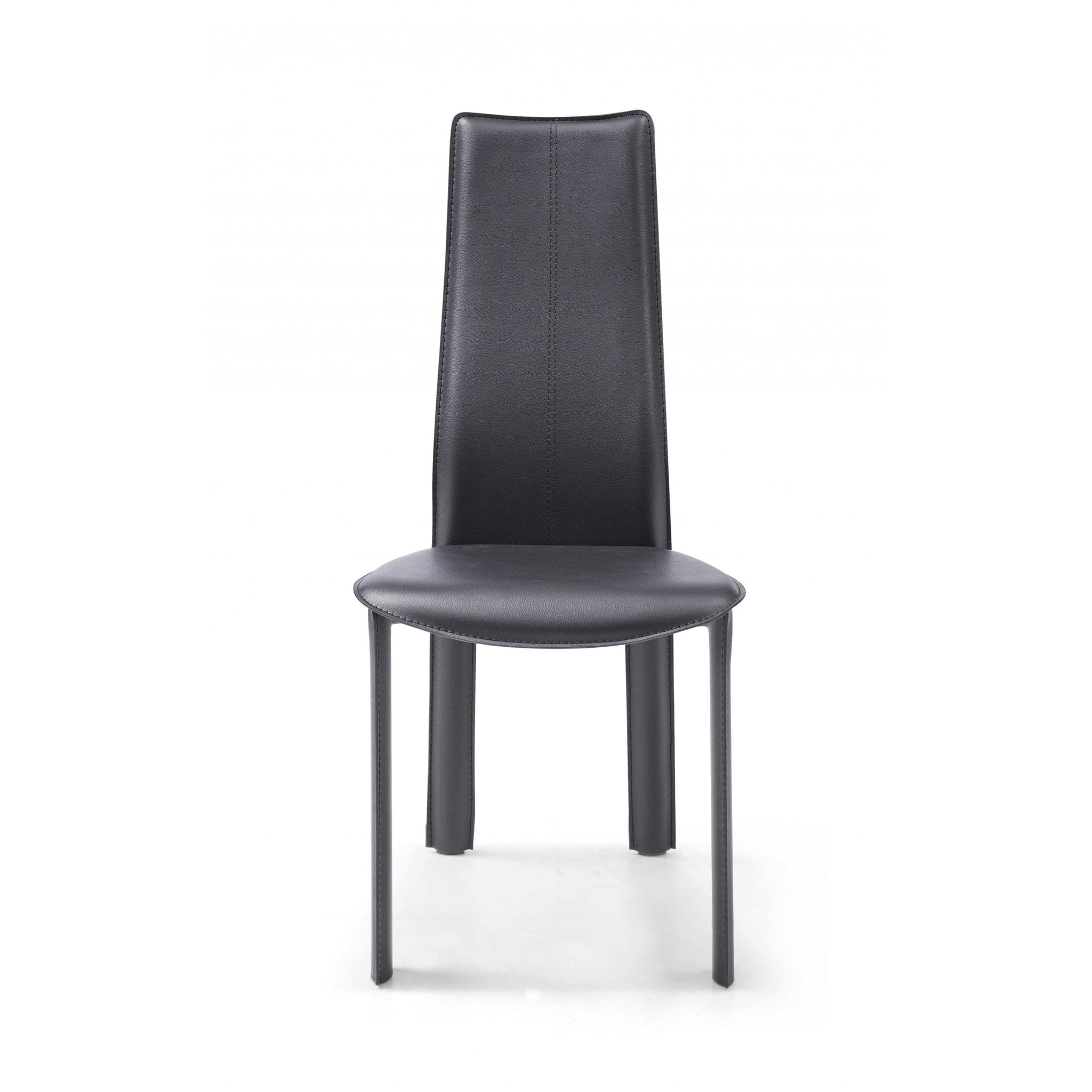 - Gift yourself with utmost relaxation, while looking stunning and enhancing your space, with this modern dining chair. Its contemporary style will elevate your rooms, and the quality of its exceptional finish and grey color will add artistic aesthetic to your home. This dining chair is a high quality piece made from high grade faux leather and chrome. It's ideal for those who want to bring a bit of life into the ambiance of their place. As for measurements, they're 41" for height, 18" for width, and 23" for depth, and it weighs 73 pounds. It would be ideal for your living room, or office, for example. You can match it with other decorations to get an ideal look for your space. Set of 4.