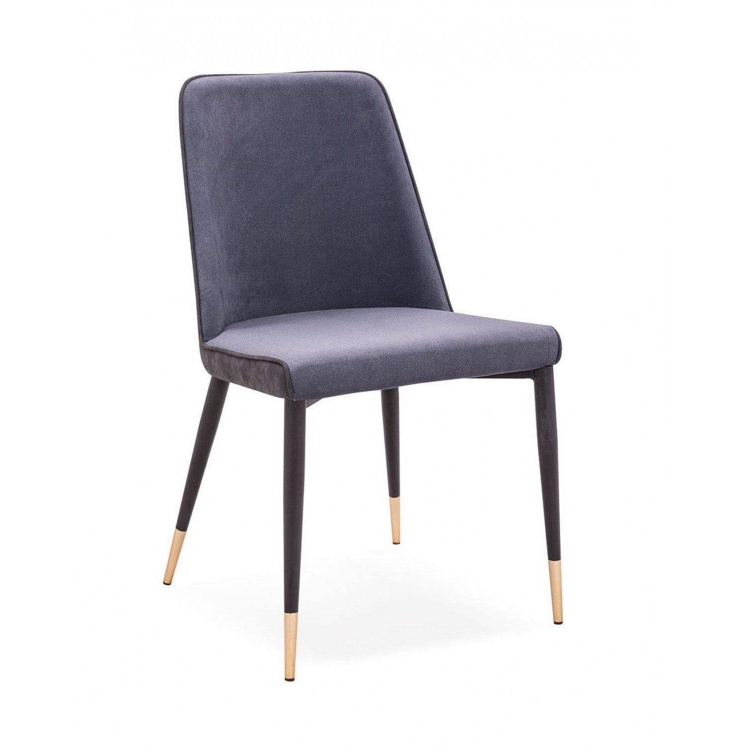 - A blend of vintage modernity and glam deco style, the Dark Gray Modern Dining Chair Set of 2 energizes your living space with its clean lines and mid-century design. The chair's base is made out of metal and finished off in black with gold details. The two-tone upholstery on the seat and backrest radiates elegance and style. 33" H x 19" W x 21" D