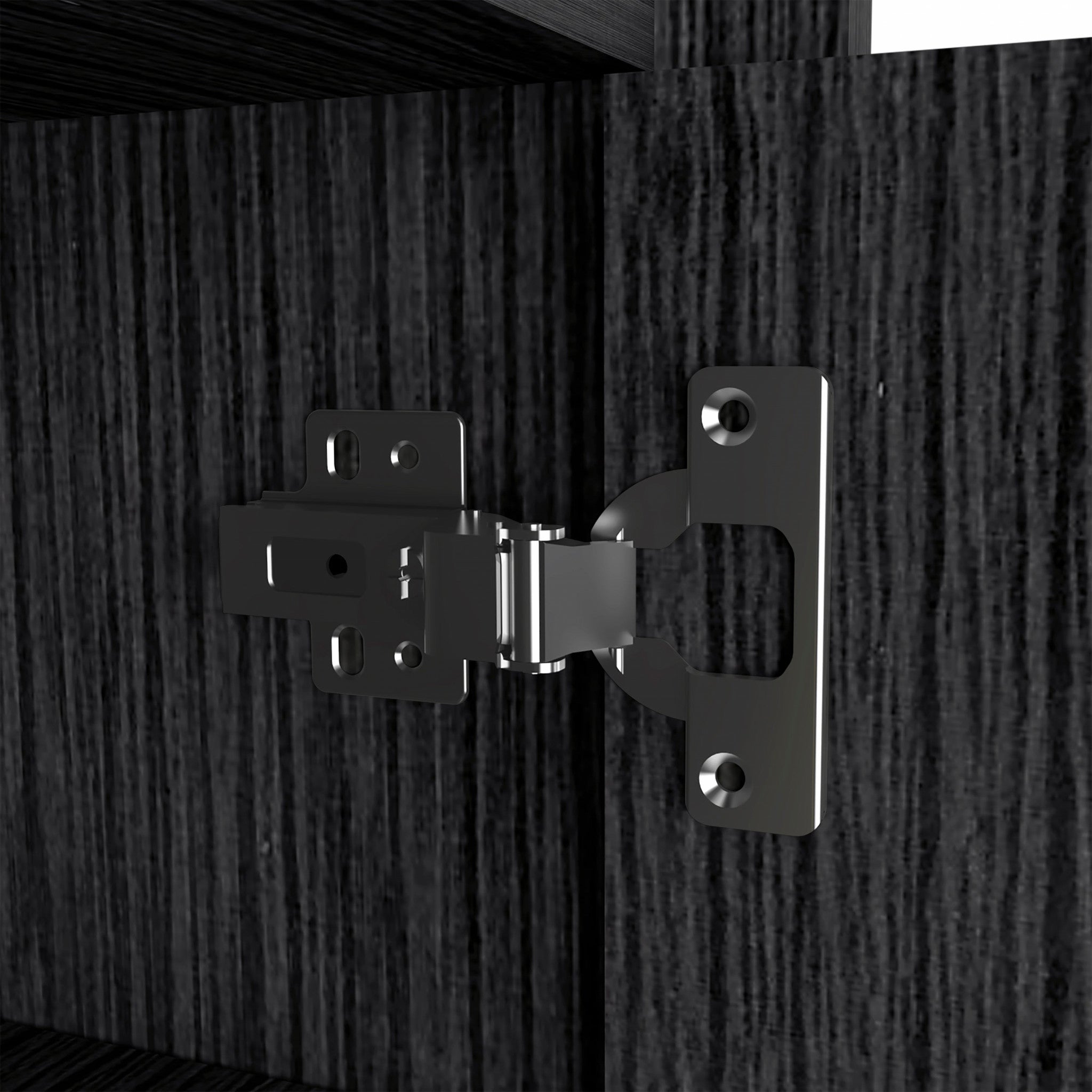 - Create your own bar paradise and party-ready corner for your modern or contemporary living space with this Smokey Oak Bar Cabinet with One Door Panel. The bar cabinet’s design itself creates the ultimate feeling of comfort and pleasure, together with the smokey oak which visually brings a balanced feeling to your space. The spacious two inner shelves with a door panel and six liquor bottle cubbies, together with a wide top surface and open shelves make this a complete storage corner, and quick access for relaxing or welcoming your special guests with a luxury and happy vibes. Crafted from durable particleboard which is perfectly designed to resist moisture and humidity with four sturdy legs, to always provide tough storage that will last. Have the pleasure of entertaining in your modern contemporary space to a whole new level with this functional yet entertaining piece. 29.10” X 26.70” X 15.30”